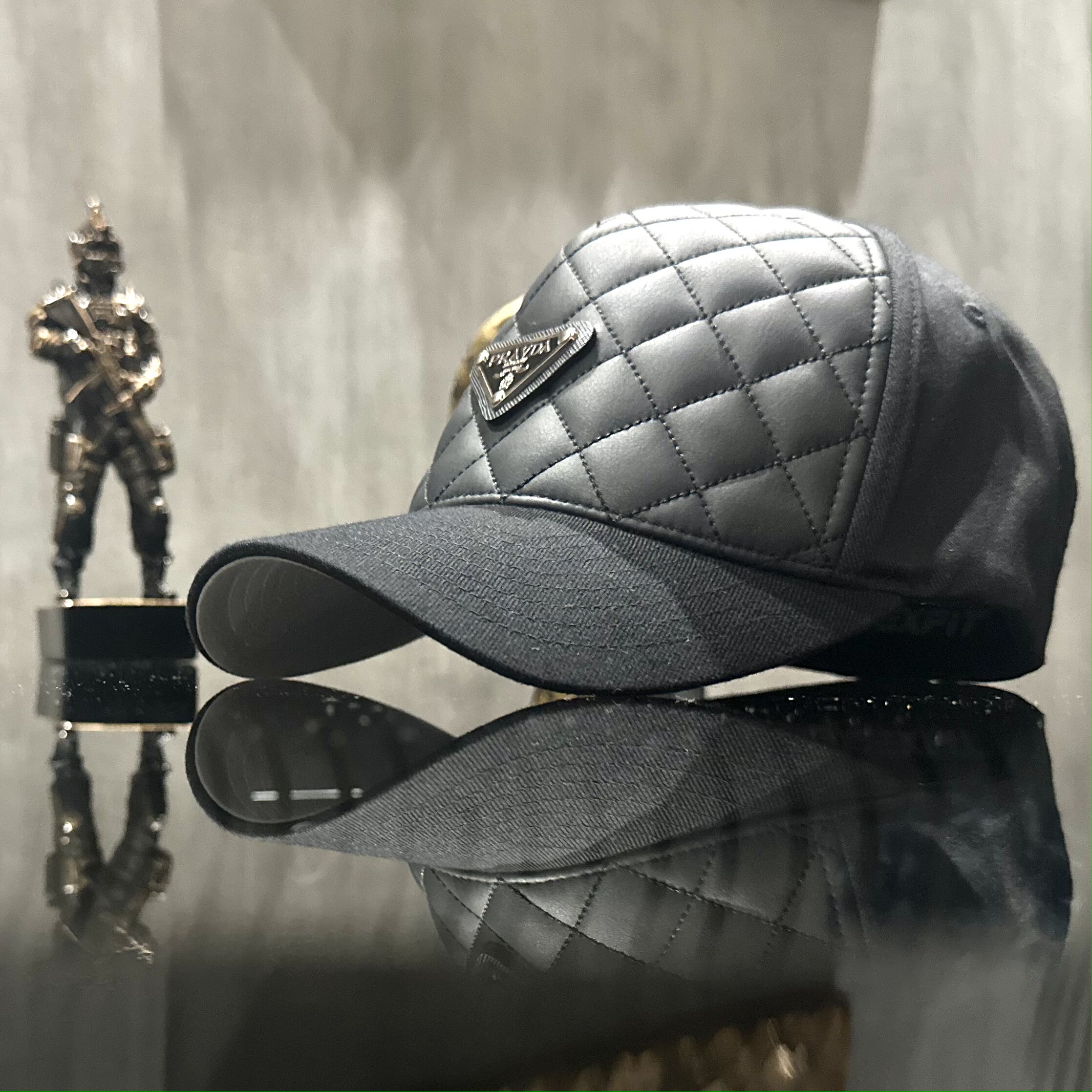 Бейсболка (черная) из экокожи Черная бейсболка с твердой передней панель и изогнутым козырьком. Твердая передняя панель из экокожи, узор "клетка" С изнанки козырёк светло-серый. Имеются люверсы для вентиляции. Модель: classic Состав: 83% полиэстер - 15% хлопок - 2% спандекс Размер: S/М (56), L/XL (60) Длина козырька: 6,5 см Глубина козырька: 12 см В коробке.