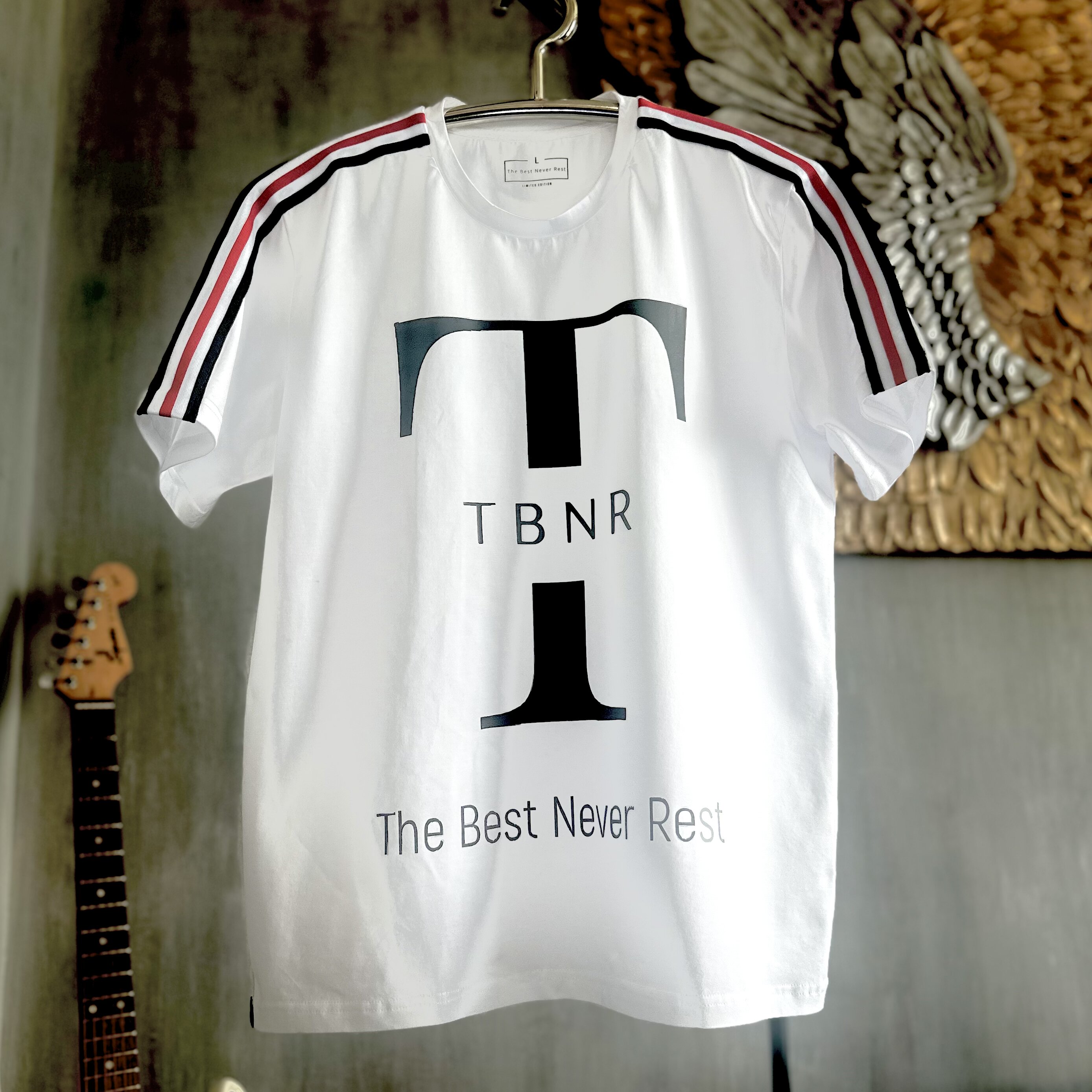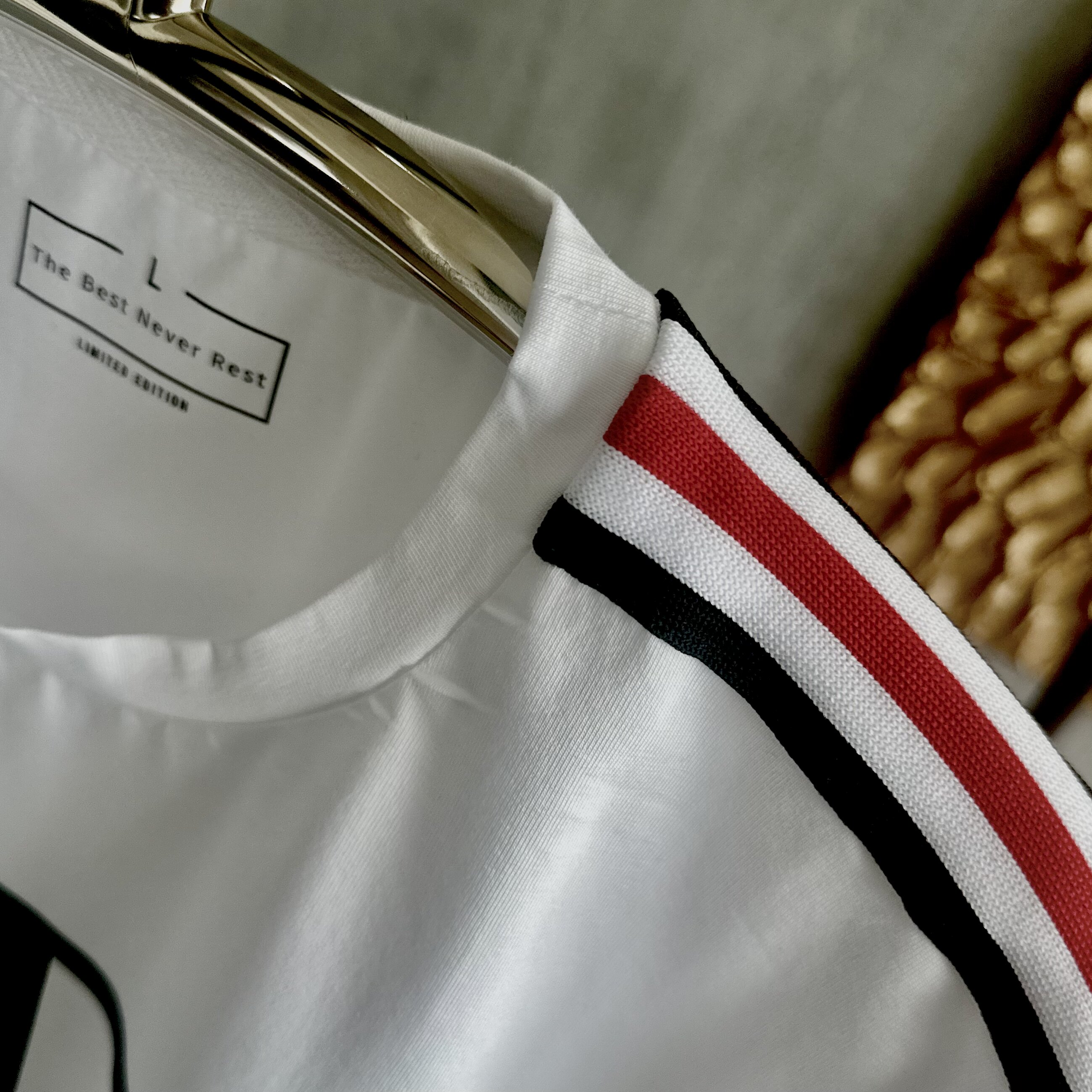 Футболка мужская "Т" с лампасами Коллекция: Limited edition Цвет: белый Размеры: XS/S/M/L/XL Состав: 95 хлопок, 5 лайкра